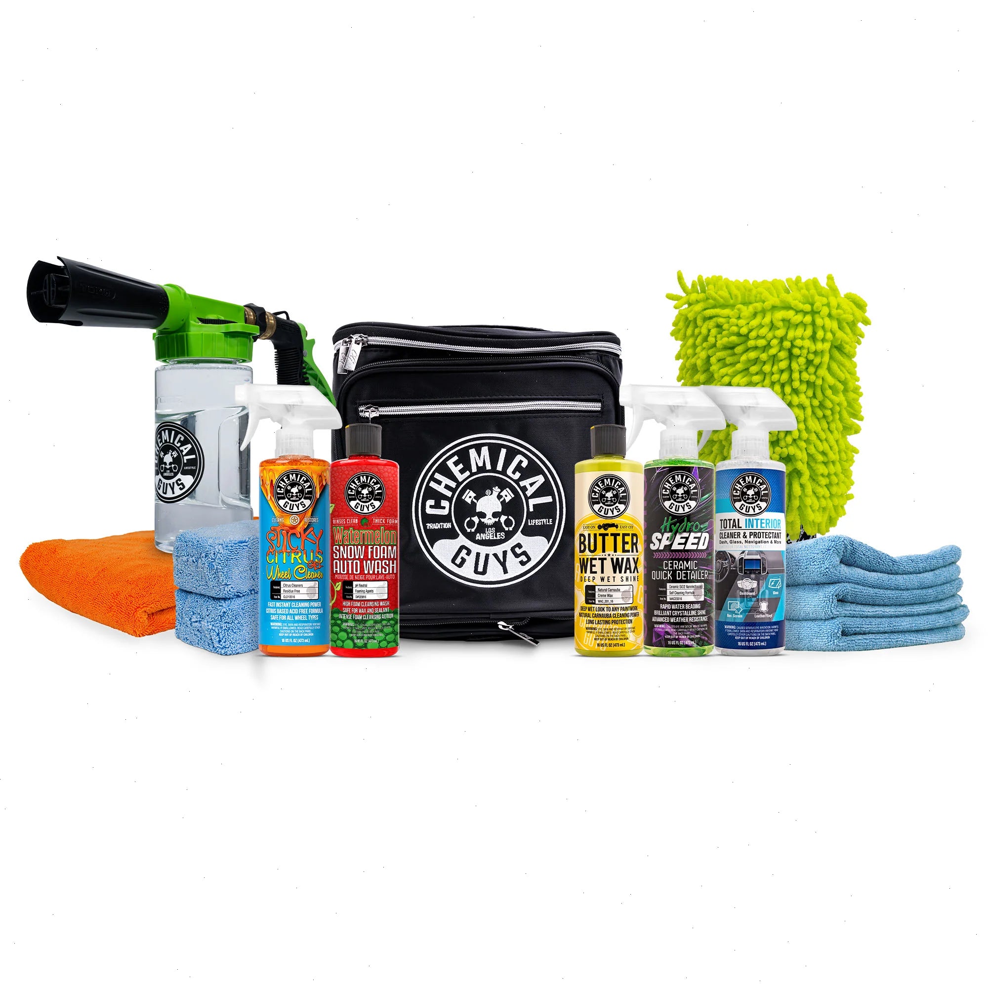 Introducing the comprehensive car care Arsenal In Your Trunk kit that covers every detail: Enhance your vehicle's exterior with Ceramic Quick Detailer, Butter Wet Wax, and Watermelon Snow Foam Shampoo. Keep wheels spotless with Sticky Citrus Wheel Cleaner Gel. Ensure interior perfection with our specialized Total Interior Cleaner & Protectant Spray. From gleaming paint to pristine interiors, this kit has everything you need for a complete car care experience.