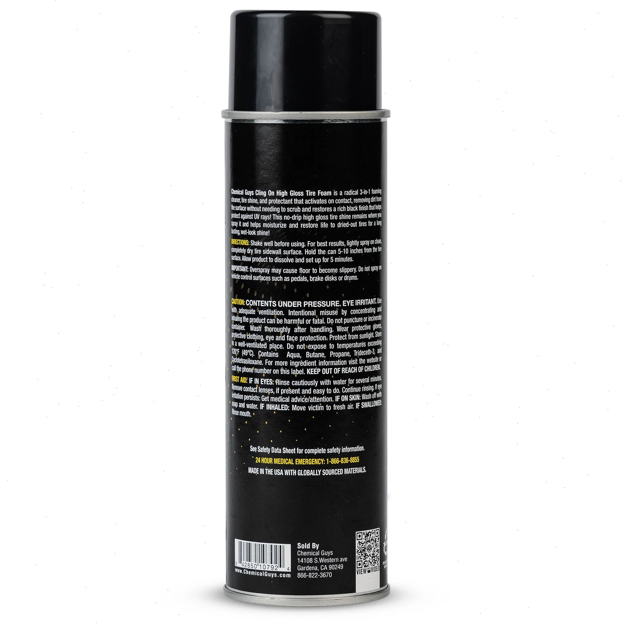 Always ensure the wheels and brakes are cool before you use this product. Shake Cling On Tire Foam and spray evenly onto your tire, holding it 5-10 inches away.