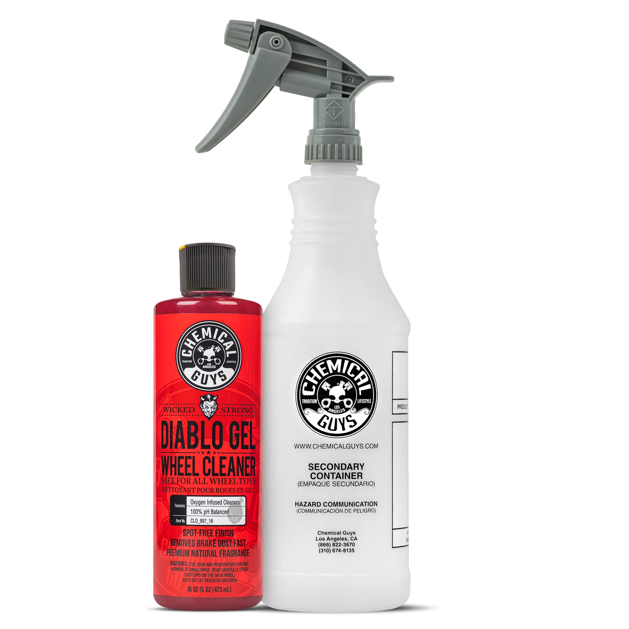 Unleash the ultimate in wheel-cleaning power with the El Diablo Spray Bundle! This kit features the legendary Diablo Wheel Cleaner—a pH-balanced, non-caustic formula designed to protect and preserve your wheels' pristine finish. For added convenience, we’ve included a refillable spray bottle, making your detailing routine smoother than ever.