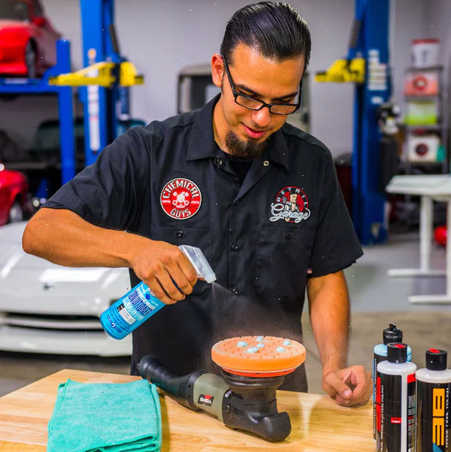 Introducing the Pad Cleaning & Conditioner Kit—your go-to for maintaining polishing pads. Our citrus-powered Polishing Pad Cleaner rejuvenates pads, while the Foam Pad Conditioning Brush restores texture. Chemical Guys Polishing Pad Conditioner reduces friction and heat buildup, ensuring optimal performance and longevity. Ideal for preserving pad quality and achieving flawless detailing results.